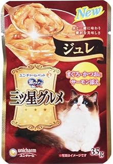 ユニ・チャーム 三ツ星グルメジュレまぐろかつおにサーモン添え35g