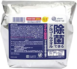 エリエール 除菌できるアルコールタオル ウイルス除去用 ウイルス アルコールタイプ ウェットティッシュ 大容量 つめかえ用 (480枚)