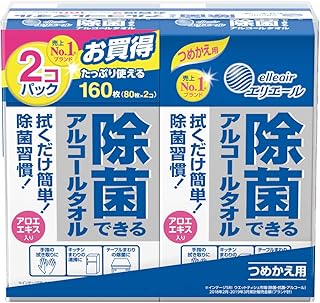 エリエール ウェットティッシュ 除菌 アルコールタイプ ボトル つめかえ用 160枚(80枚×2パック) 【まとめ買い】