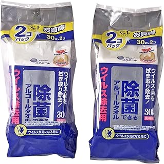 【まとめ買い】エリエール ウェットティッシュ 除菌 ウイルス除去用 携帯用 除菌できるアルコールタオル60枚(30枚×2パック) 【×2個】