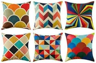 SunnyBox クッションカバー ピローケース カラフル アート 幾何学模様 インテリア モダン 背当て さらさら リネン かわいい おしゃれ 北欧風 カフェ用 レストラン用 ホテル用 45cm x 45cm 6枚セット