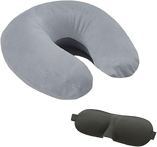 Dream Therapy(ドリームセラピー)トラベルエアーネックピロー 洗えるカバー アイマスク 収納ポーチ 付き グレー