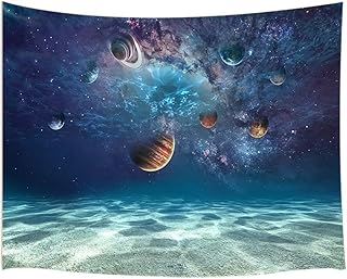 JAWO 宇宙装飾タペストリー 壁掛け クリエイティブ 海底 ビーチ コズミックプラネット ポリエステル生地 壁タペストリー ホーム リビングルーム ベッドルーム 寮の装飾 幅80 x 長さ60 インチ
