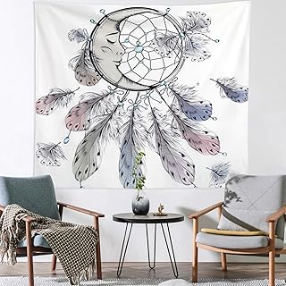 ボヘミアンドリームキャッチャータペストリー 壁掛け - ドリームキャッチャー ムーンタペストリー サイケデリックフェザー 壁タペストリー 壁アート 寝室 リビングルーム 寮の装飾 (59.1 x 78.8インチ)