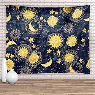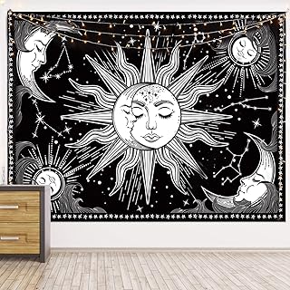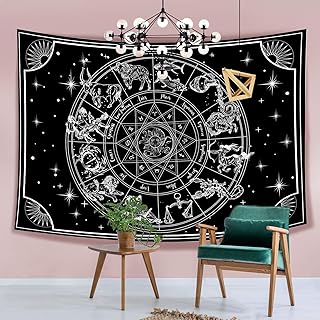 Hexagram 12星座タペストリー 白黒タペストリー 壁掛け ヒッピータロットカード タペストリー ボヘミアン 太陽と月 壁タペストリー 寝室 リビングルーム 寮の部屋 ホームデコレーション 51 x 59インチ
