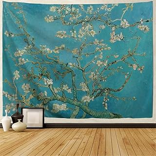 BJHAP 壁掛けタペストリー ヴァン・ゴッホ 咲くアーモンドツリー 壁タペストリー フラワータペストリー アート付き 自然 ホーム装飾 リビングルーム 寝室 寮の装飾 90 x 60インチ
