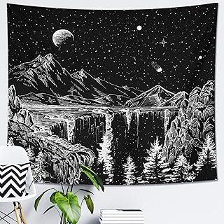 DESIHOM 星月夜タペストリー 山のタペストリー 月と星のタペストリー 白黒 壁タペストリー 寝室 リビングルーム 寮の装飾 59 x 51インチ