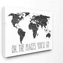 Stupell Industries 白黒マップ Oh The Places You'll Go タイポグラフィー キャンバスウォールアート 16 x 20インチ アーティストによるレタリングと罫線入り