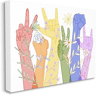 Stupell Industries レインボーピースラブケアハンドサイン ASL Grace Poppによるデザイン キャンバスウォールアート 16 x 20インチ マルチカラー