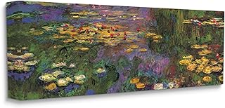 Stupell Industries 鮮やかな伝統絵画 睡蓮のディテール クロード・モネによるデザイン キャンバスウォールアート 13 x 30インチ グリーン