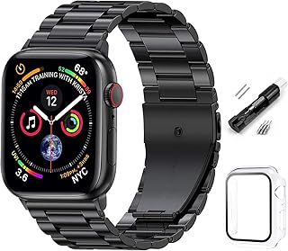 【2021改進版】コンパチブル Apple Watch バンド 44mm ステンレス アップルウォッチ ベルト交換用 Apple Watch ケース付き Apple Watchアクセサリ iWatch SE/Series 6 5 4 3 2 1 長さ調整ツール付属(44mm,ブラック)