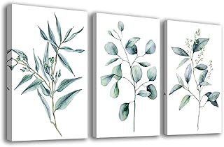 緑の葉 壁アート ユーカリ植物 現代 ウォールアート キャンバス写真 モダン 植物 アートワーク フレーム入り バスルーム 寝室 保育園 リビングルーム ホーム オフィス キッチン 壁装飾 16インチ x 24インチ 3ピース