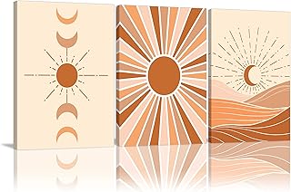 Mid Century 壁アート 3パネル フレーム キャンバス テラコッタ 壁画 ミニマリスト 壁 プリント 月 ボーホー キャンバスプリント モダン 幾何学模様 室内装飾 リビングルーム 寝室 バスルーム オフィス用 フレーム入り すぐに掛けられます