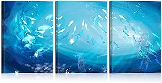LACEDUSA キャンバスプリント 壁用 水彩画 オーシャンデコ HDアートプリント 抽象 ウォールアート プリント 北欧スタイル 素晴らしい魚の学校 キャンバス 壁装飾 フレーム入り すぐに掛けられる バスルーム リビングルーム 風景 ホーム オフィス キッチン ホームデコレーション(30.48cmx40.64cm 3パネル、フィッシュストーム)