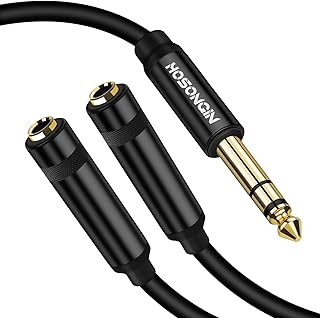 HOSONGIN 1/4 to Dual 1/8 Splitter Cable has one 1/4 inch (6.35mm) TRS Stereo Plug and two 3.5mm (1/8 inch) Female Stereo Jack, it help you connecting audio devices with a 6.35mm (1/4 inch) trs stereo jack to headphones or speakers with 3.5mm (1/8 inch) trs plugs. Amazon Basics 3.5mm to 2-Male RCA Adapter Audio Stereo Cable - 4 Feet (69949) $6.38 Frequently bought together Total price: $27.97 These items are shipped from and sold by different sellers. y cable audio breakout cable midi to trs mini to xlr computer audio cord 20 foot audio cable speaker line cable balanced trs to aux Compare with similar items